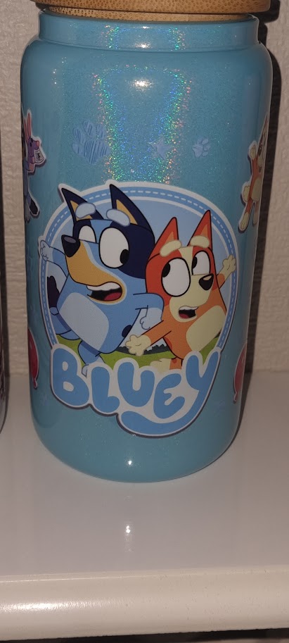 Bluey drinks glass, bamboo lid and straw