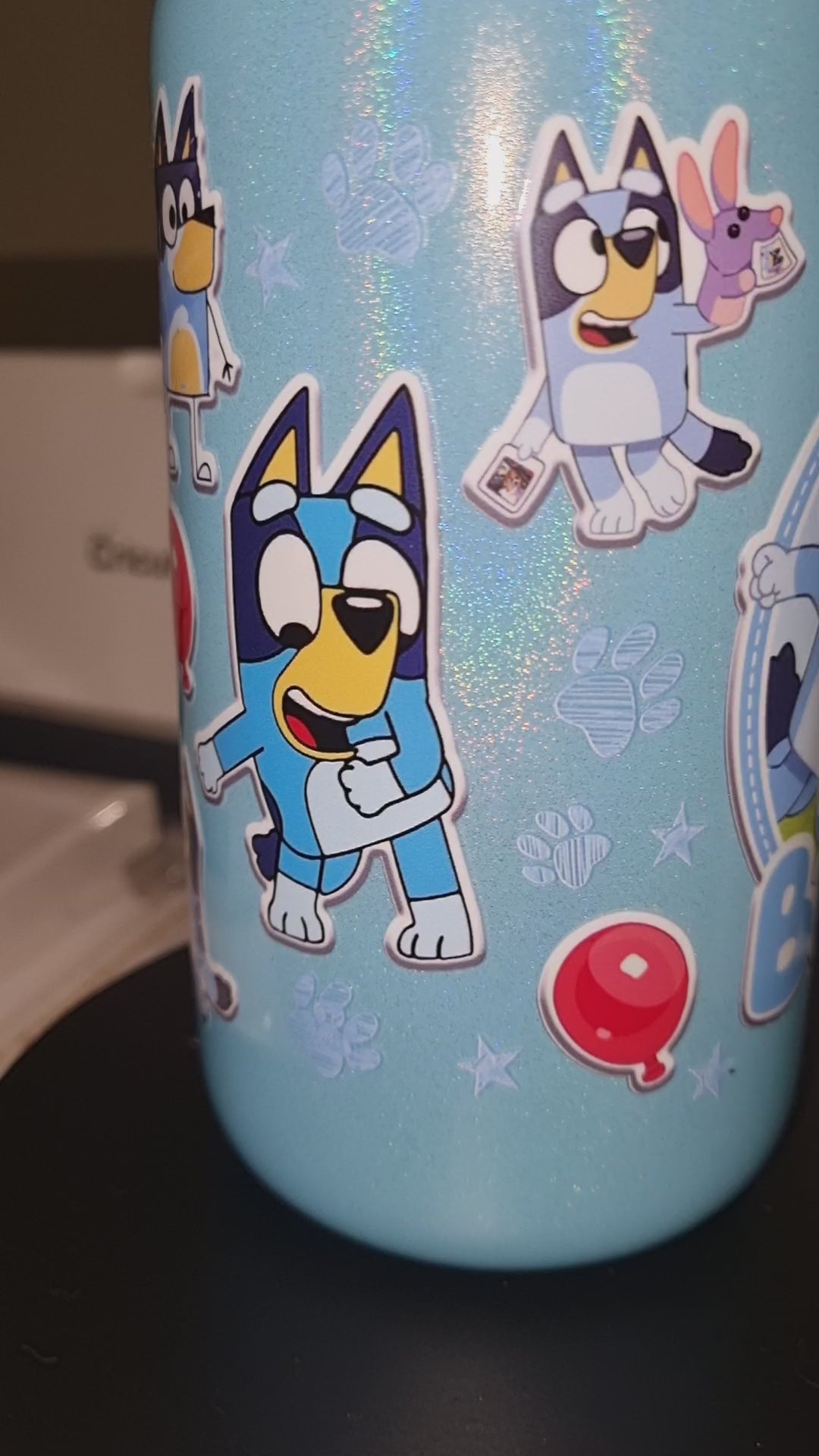 This Bluey-themed glass features a subtle blue shimmer finish, making it a charming addition to any drinkware collection. It is topped with a natural bamboo lid that provides an airtight seal, helping to keep drinks fresh. The included plastic straw is reusable and designed for easy sipping, combining practicality with playful design. Ideal for both kids and fans of Bluey, this glass offers a sturdy and eco-friendly way to enjoy beverages.